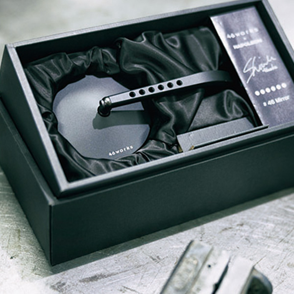 ステーはエッジ感のこだわりをアルミ切削加工にて表現