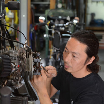 を中心としながら、クラシックカーのパーツ製作、またオリジナル・ファニチャー製作も手掛ける。 工学部出身であり、ヌクラシックレースやツインレース等にも多数参戦。理論と実践からなる車両 製作を得意としている。2014年BMWRnineTCustomProjectに参加し、製作した