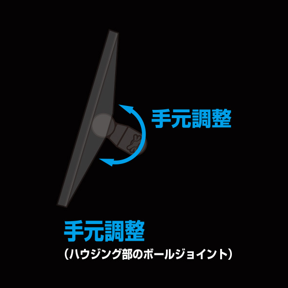 ハウジングの角度はボールジョイントで基本15°は確保されており調整しなくても十分な視界を確保が可能になっています。