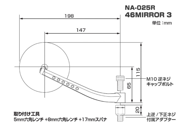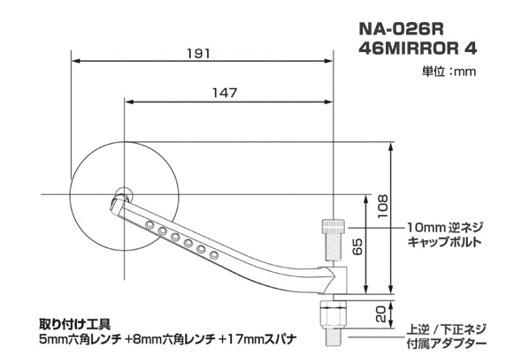 鏡面積(Φ95mm) / 右側面:NA-025R / 左側:NA-025L