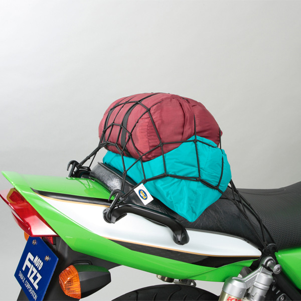 最強フックと、大幅伸縮ゴムでガッチリ荷物をホールド
