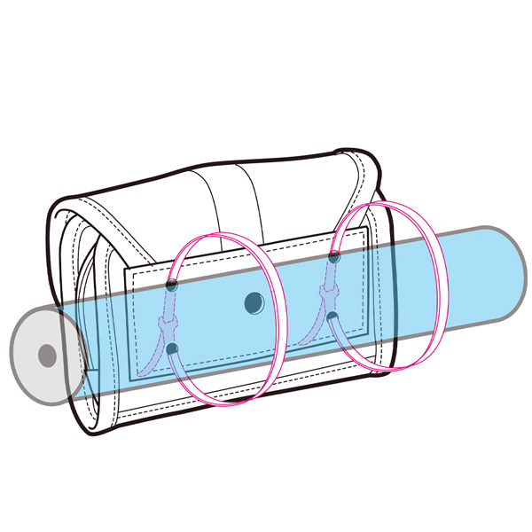 付属の結束バンドをバッグの穴に通して、車体へ取り付けてください。