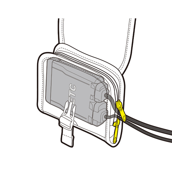 コードはWファスナーで挟む様にして外部へ取り出し、ETC車載器を収納してください。
