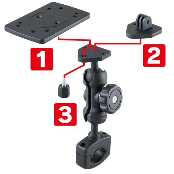 ・各種アダプタ(標準装備)を交換する事で様々なデジタル機器をハンドルにマウントできます。