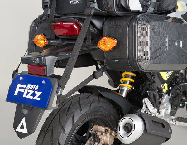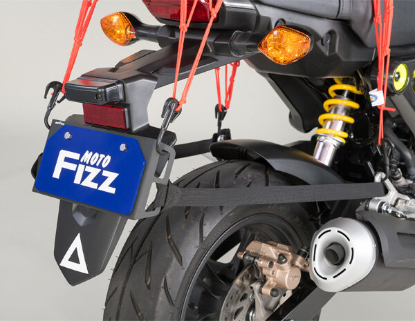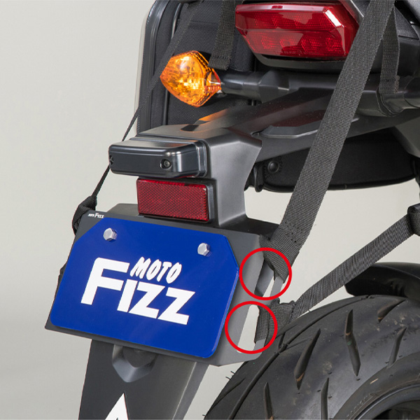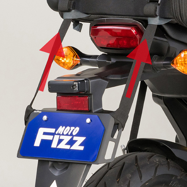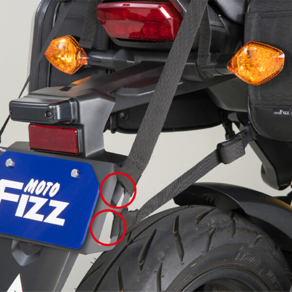 ・ナンバープレートを強固に守りバッグ等の積載しやすい位置に荷掛けフックを増設。