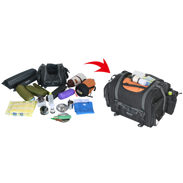 ■インナーフレーム構造で積載時のバッグ形状が崩れにくい。