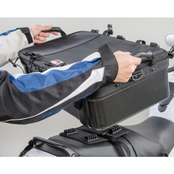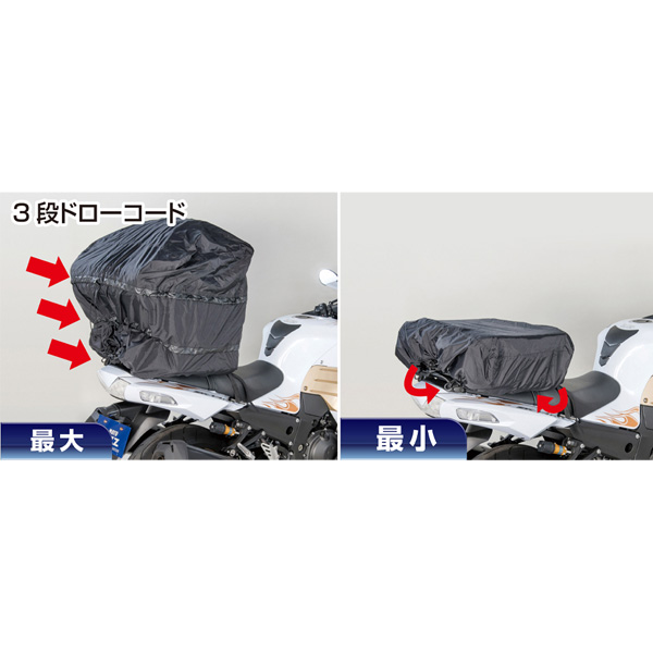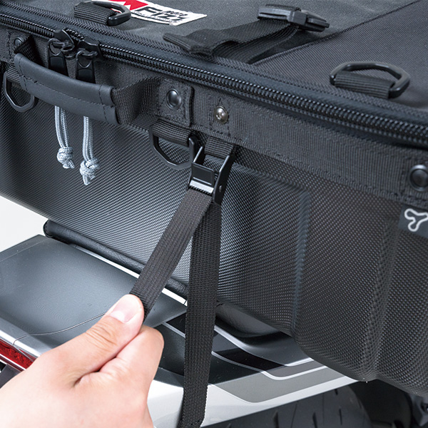 | 部品構成 | ・バッグ本体×1 ・セフティベルト×1 ・クイック固定ベルト×4 ・ボトムベース×1 ・ベルト止めストッパー×5 ・レインカバー×1 |