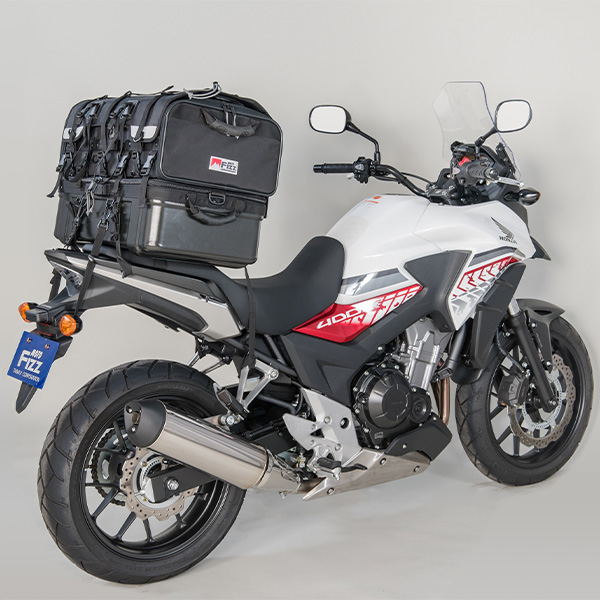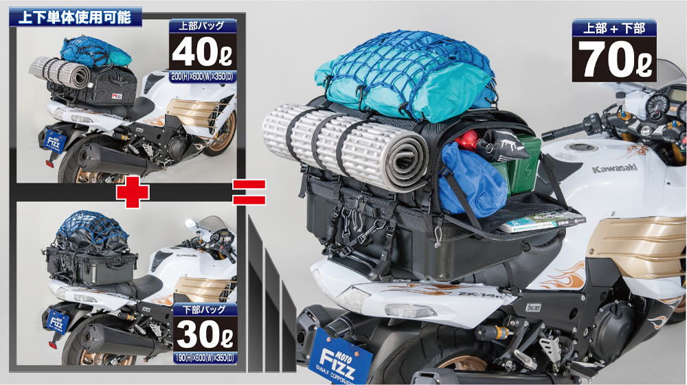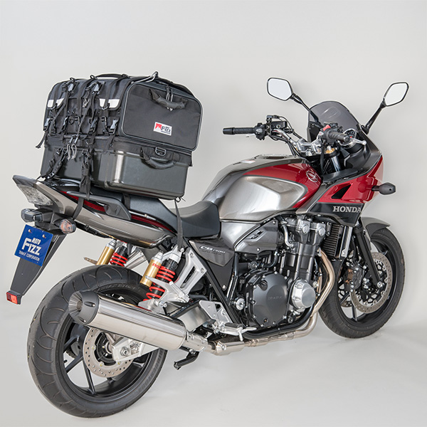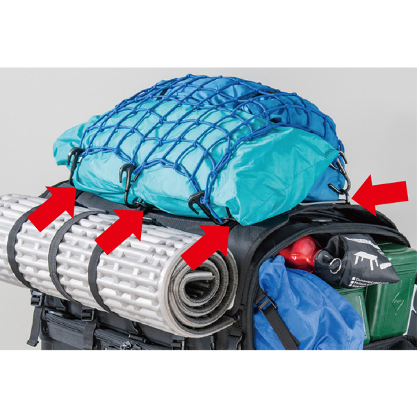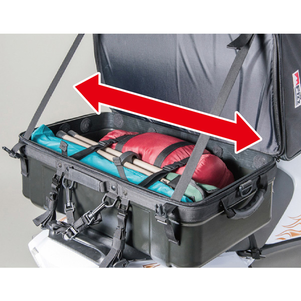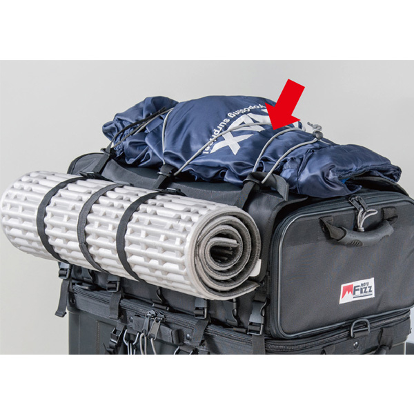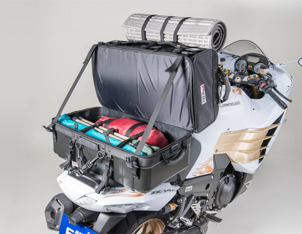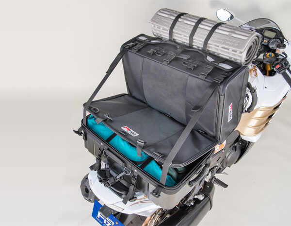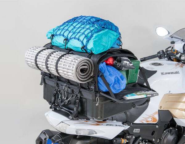 別売りのツーリングネットVを使用する事で、大型のキャンプ用品などの積載が可能。