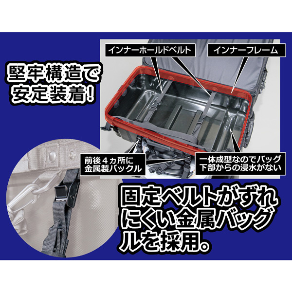 インナーフレーム構造+インナーベルトで安定装着。荷物が少ない時でのバッグ形状をしっかり保ちます。
