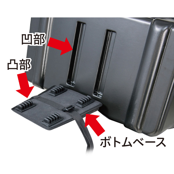 専用のボトムベースに底面の凹凸を合わせて挟み込む事で、滑りを防止します。