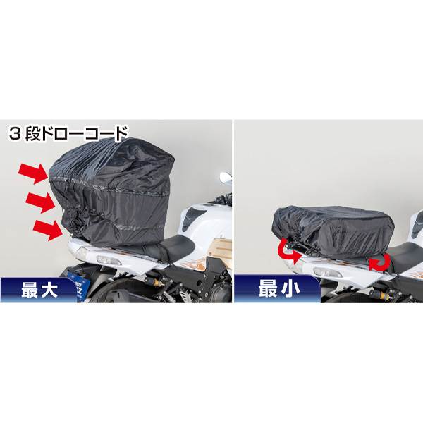 3段ドローコードでバタつきを防止。上部・下部バッグを単独使用した際もスマートに装着可能。