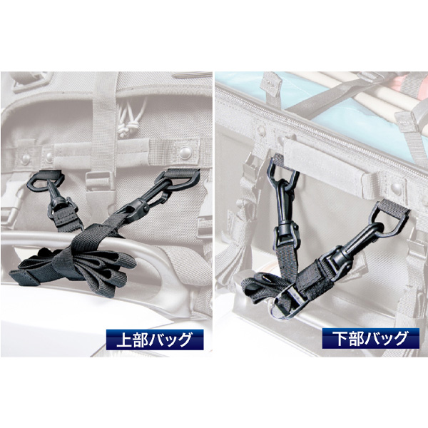 バッグを持ち歩く時に便利なショルダーベルトを装着出来るDリングを上部バッグ・下部バッグ共に装備。