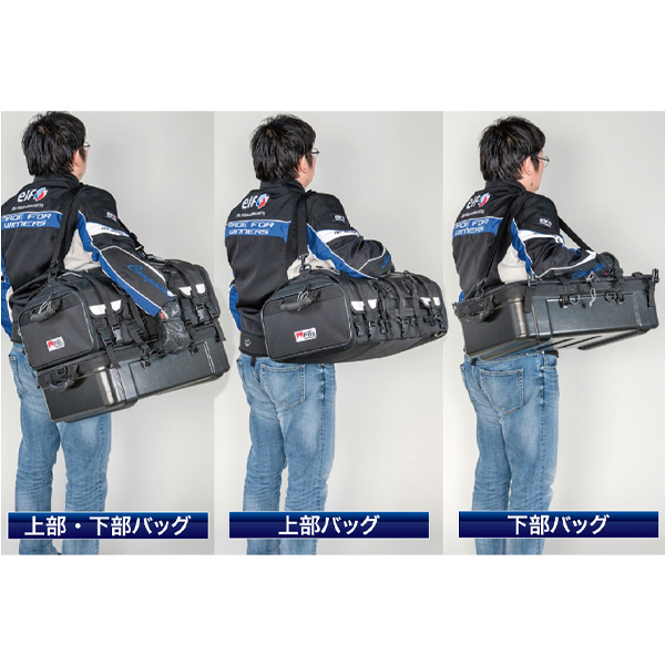 部品構成 ・バッグ本体×1(上部×1/下部×1) ・ホルダーベルト×2(本体装着済み) ・固定ベルト×4 ・レインカバー×1 ・ボトムベース×1 ・クイック固定ベルト×4 ・ベルト止めストッパー×5 ・セフティベルト×1