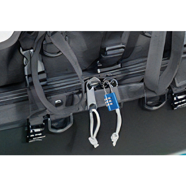 メインファスナー等に錠をかける事が出来るロックスライダーを採用。サービスエリア等でも安心の機能です。