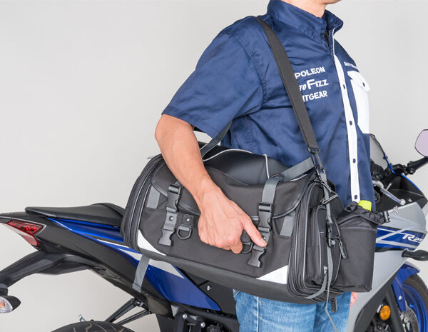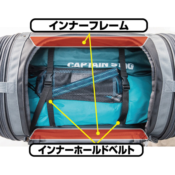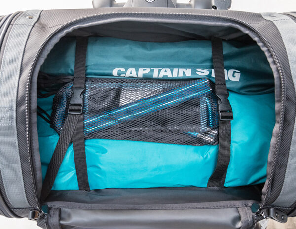 | 部品構成 | ・バッグ本体×1 ・固定ベルト×4 ・センター固定ベルト×1 ・接続バックル×1 ・レインカバー×1 |