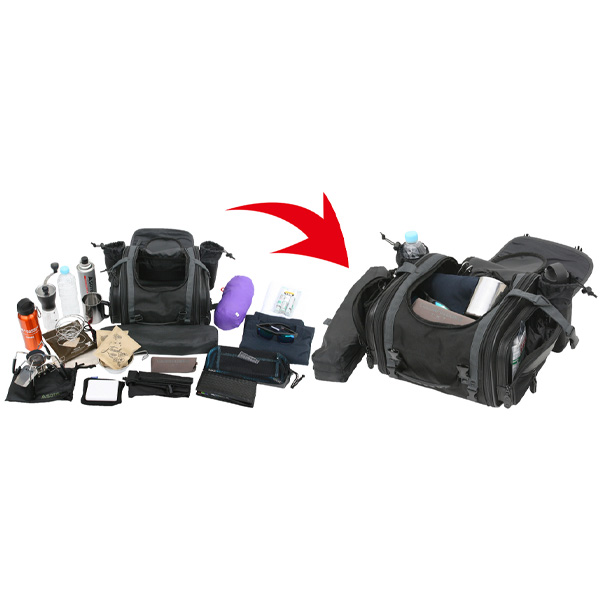■左右に容量アップ可能。多少の追加積載もOK。