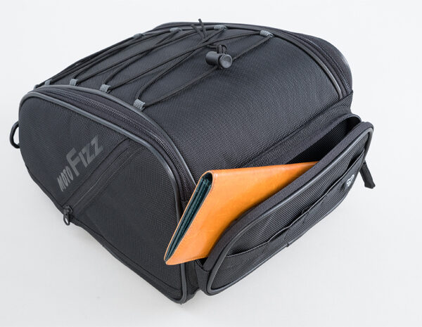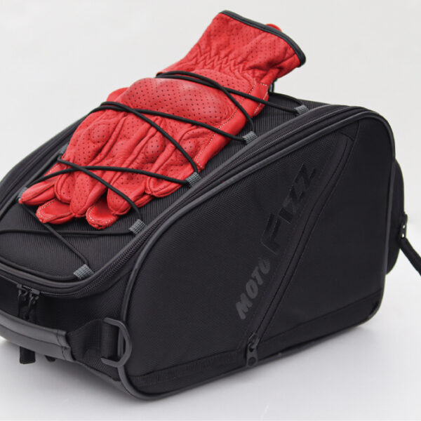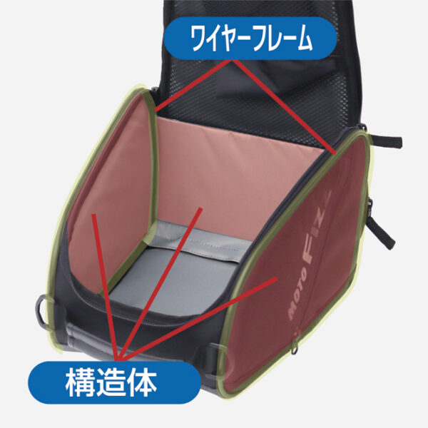 ・グローブやメガネの一時置きに便利な上面バンジーコードを装備