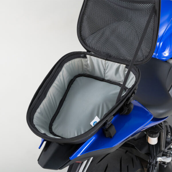 外見は小さいですが、ツーリングに行く必需品の収納には充分な容量6.0リットル。