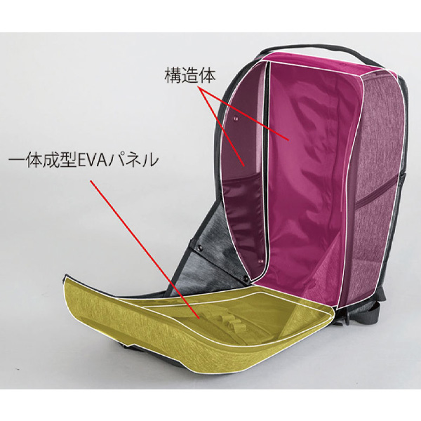 EVA素材の立体成形パネルが美しいフォルムを保持します。立体成形ならではの風の影響を受けにくい形状がライディング時の安定感をもたらします。