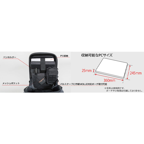 | 部品構成 | ・本体×1 ・レインカバー×1 ・Kシステムベルト×1 ・接続バックル×1 |