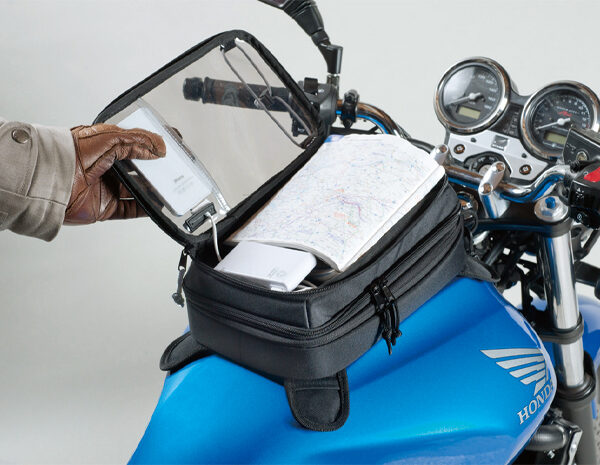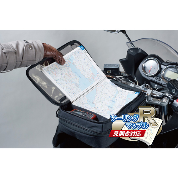 地図と、スマートフォン地図アプリが併用出来る使い易い大きさのタンクバッグ
