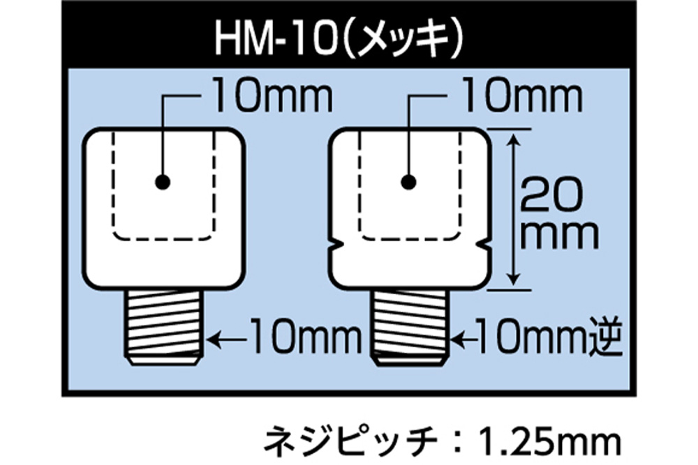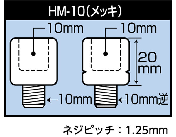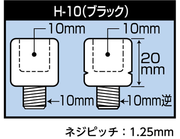 | ネジ径 | 10mm正ネジ→10mm逆ネジ、10mm正ネジ→10mm正ネジ(ピッチ:1.25mm) |