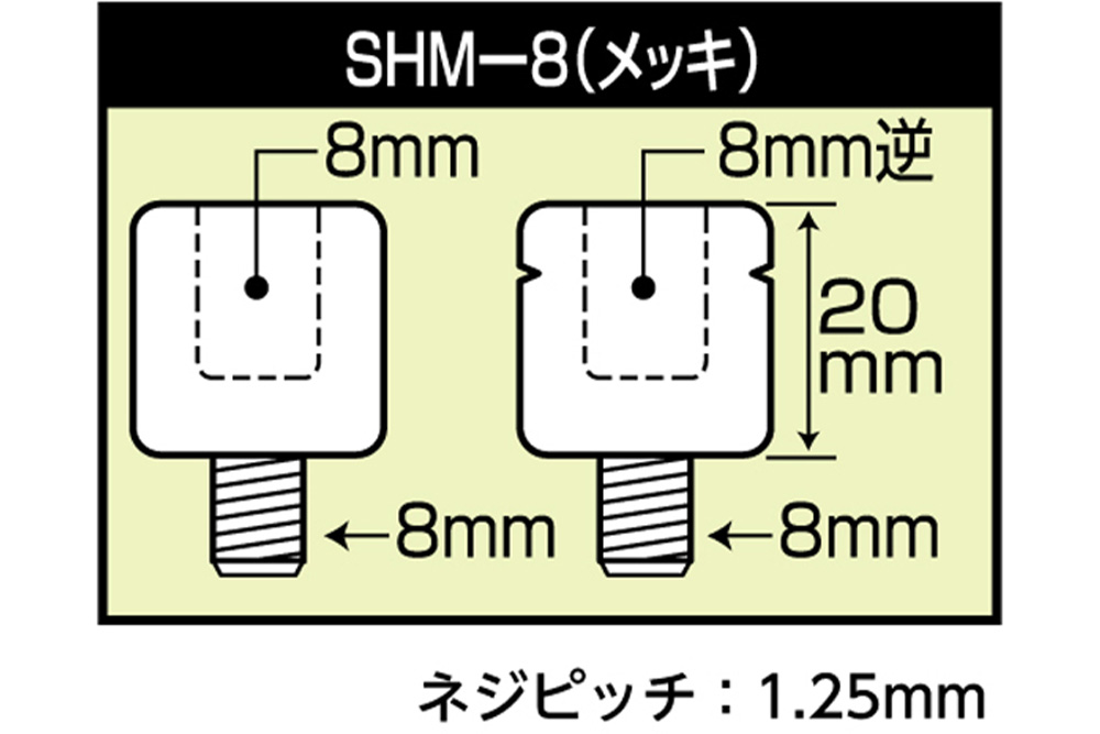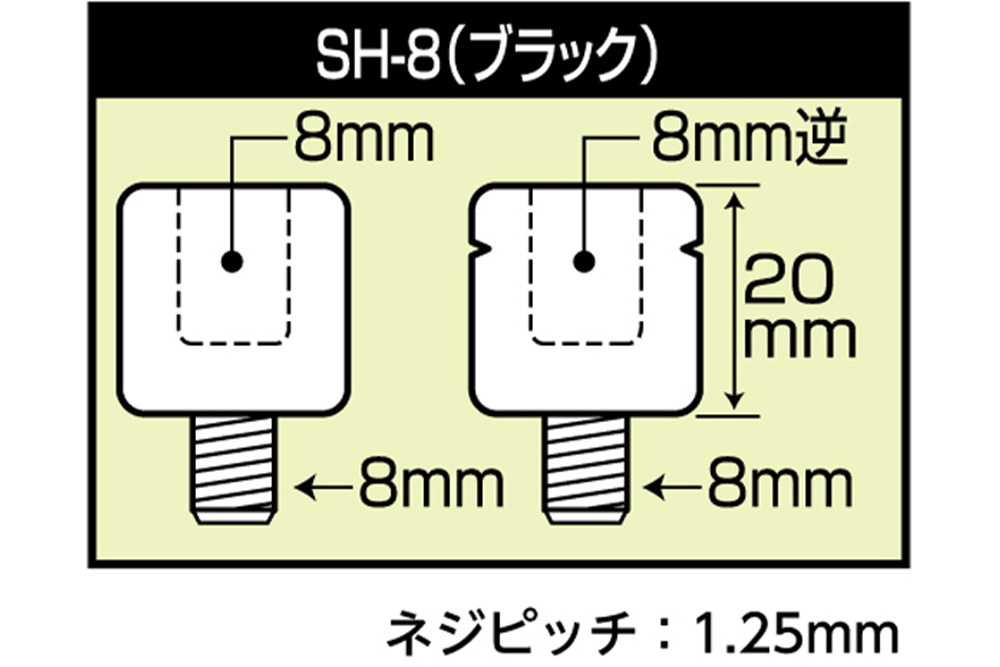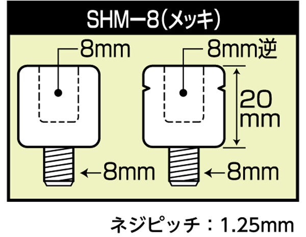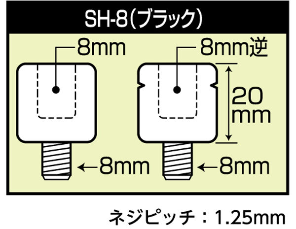 | ネジ径 | 8mm逆ネジ→8mm正ネジ、8mm正ネジ→8mm正ネジ(ピッチ:1.25mm) |
