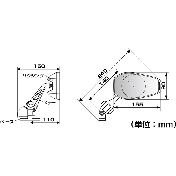 | 部品構成 | ・ミラー本体(左右共通)×1 ・スペーサー×1 ・パッキン×2 ・M6*40mmボルト×2 ・M6*30mmボルト×2 ・M6*20mmボルト×2 ・M6*15mmボルト×2 ・M6ワッシャー×2 ・M6ナット×2 |