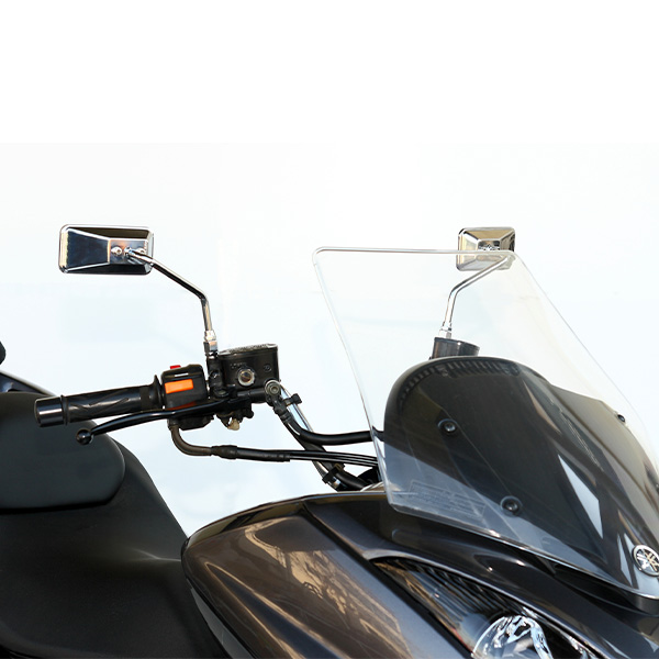 ■小さくても広い後方視界を確保する「曲面鏡」を使用。