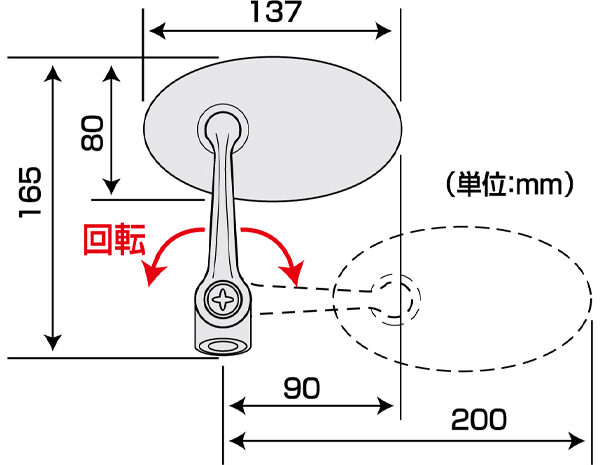 ■可倒式ステー採用によりワンタッチでミラー位置を調節可能。