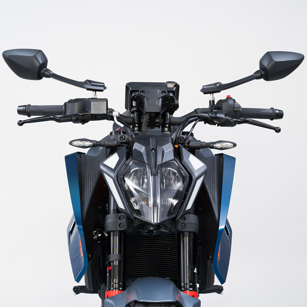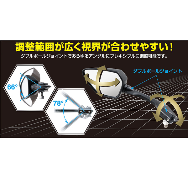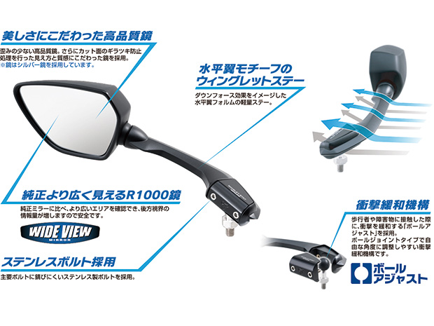 水平翼ステーを採用したスタイリッシュなカスタムミラー!ハンドル上に翼のように装着される水平翼デザインのステーを採用