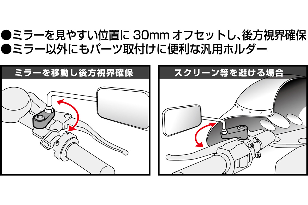 ■ミラー以外にもパーツ取付けに便利な汎用ホルダー