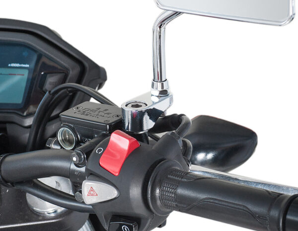 ■ミラーを見やすい位置に30mmオフセットし後方視界確保
