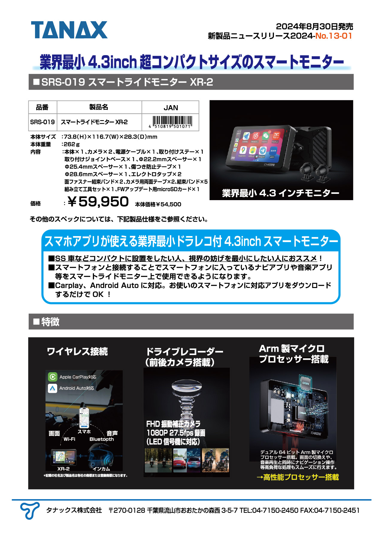 スマホアプリが使える業界最小4.3インチ超コンパクトサイズのドラレコ付スマートモニターを発売