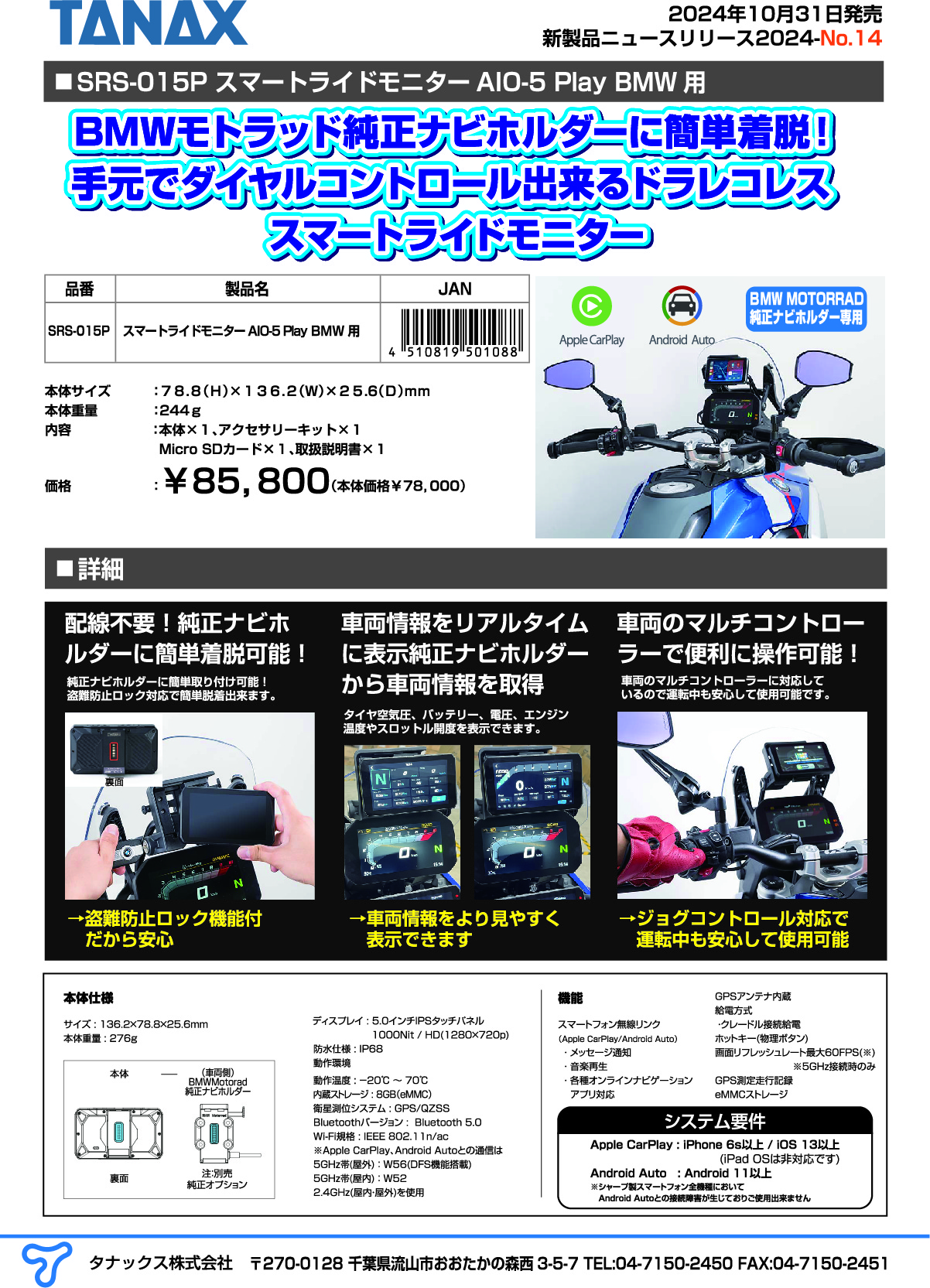 2024年10月31日にスマートライドモニター AIO-5 Play BMW用を発売