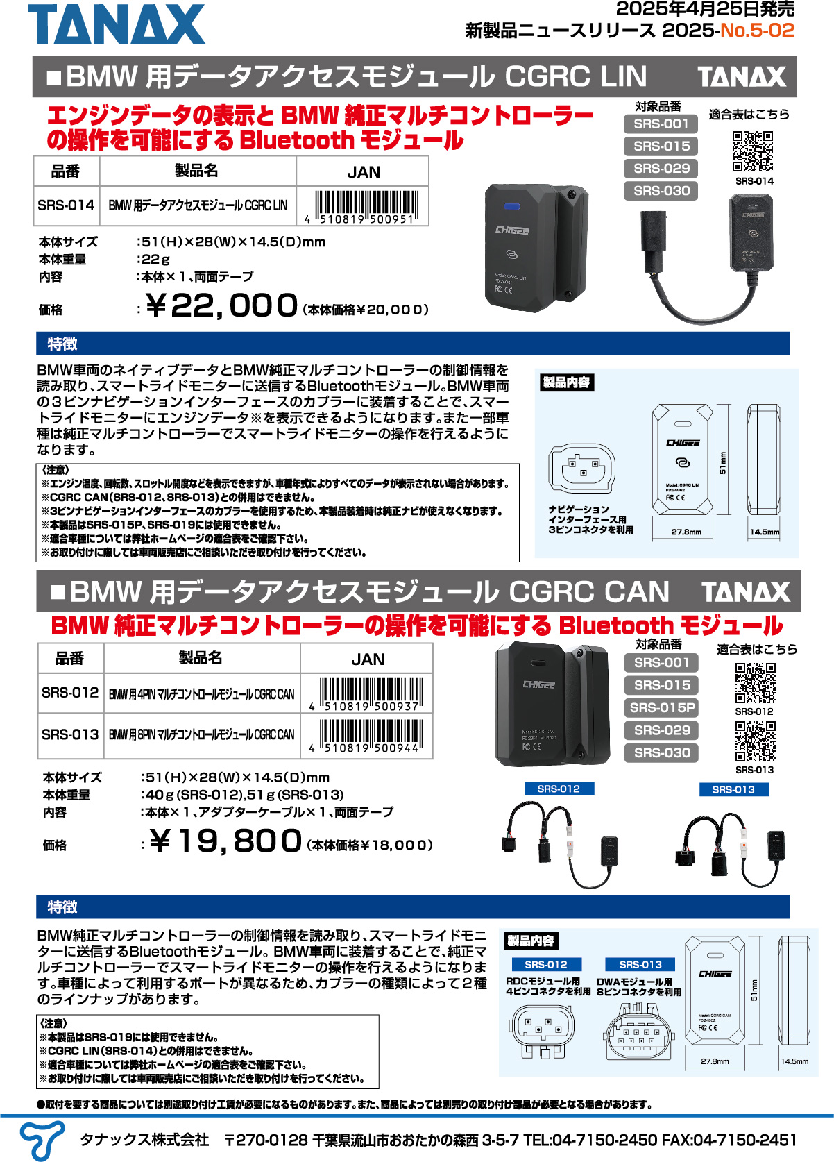 BMW用データアクセスモジュールCGRC LIN/CGRC CANを発売