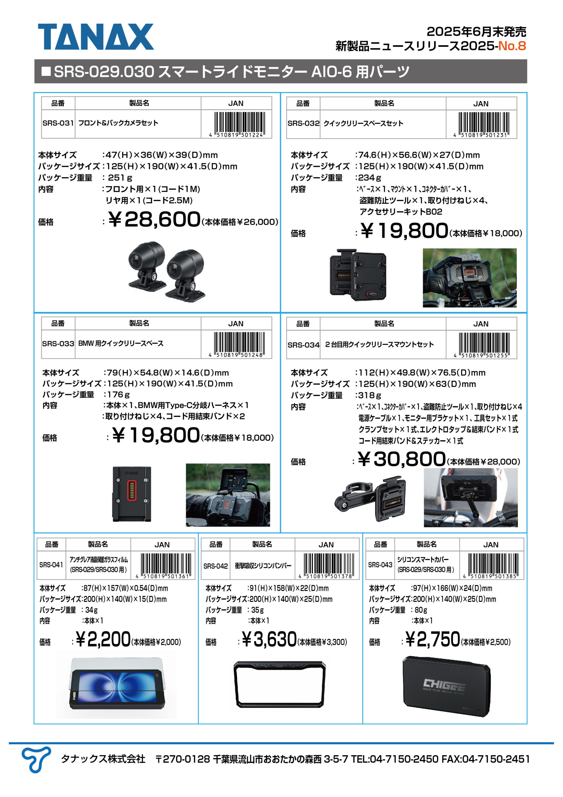 2025年6月末にSRS-029.030スマートライドモニターAIO-6用パーツを発売