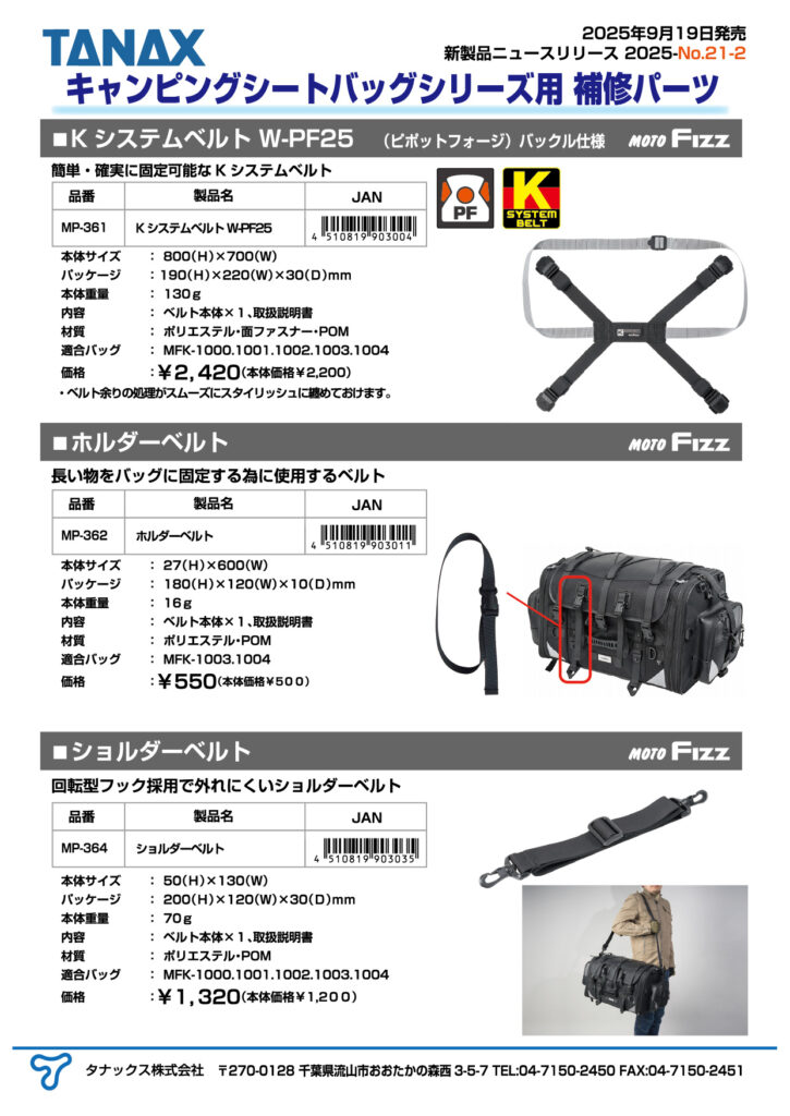 【MOTOFIZZ】 ツーリングバッグ・アクセサリー
