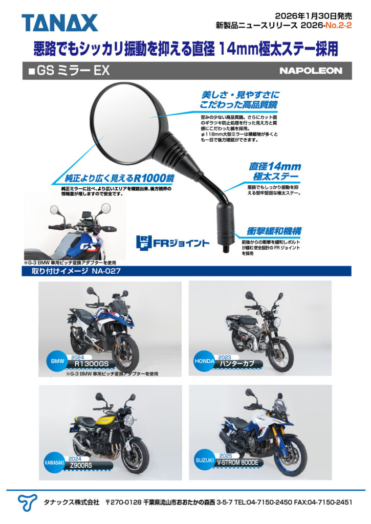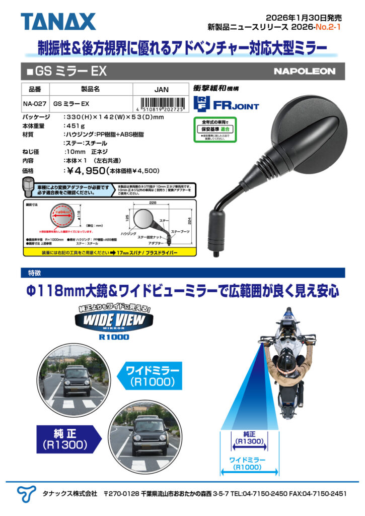 制振性&後方視界に優れるアドベンチャー対応大型ミラー
