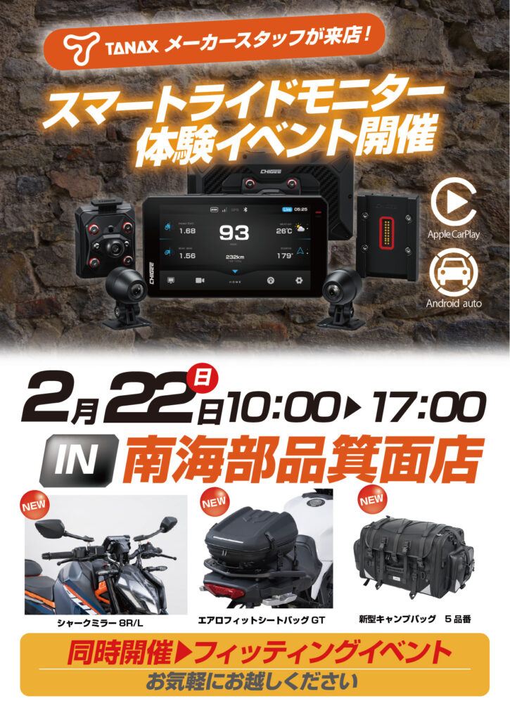 2/22(日)  南海部品箕面店 タナックス展示イベント開催いたします!