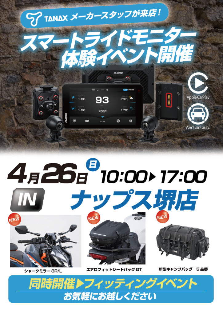 4/26(日)  ナップス堺  タナックス展示イベント開催いたします!