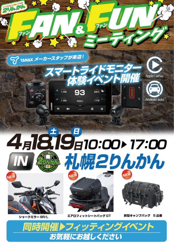 4/18(土).19(日)  札幌2りんかんFUN&FUNミーティング タナックス展示イベント開催いたします!
