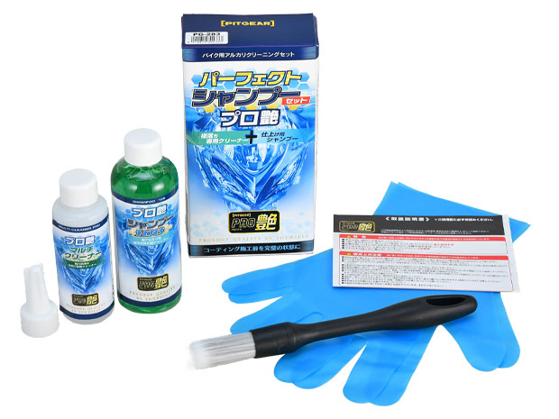 ・足回りやオイル汚れを強力に落とすアルカリ性クリーナーと仕上げシャンプーの豪華セットで汚れをとことん落とします。