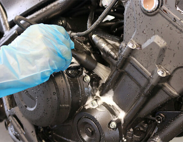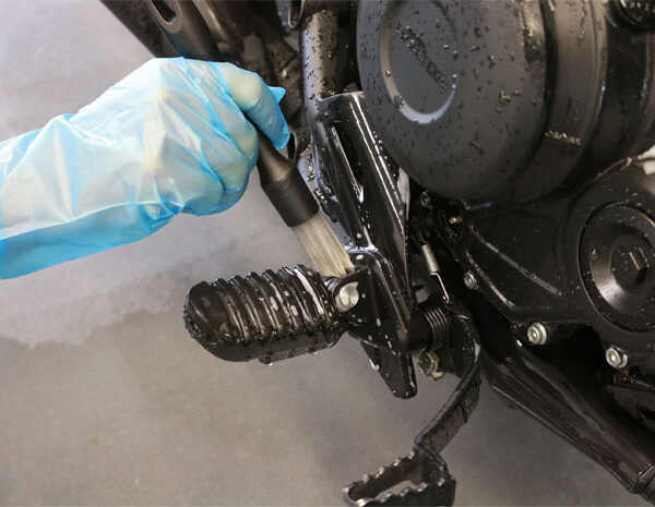 ・複雑な形状のエンジン部、ブレーキキャリパー、スプロケット、洗浄しにくいホイールの内側などの