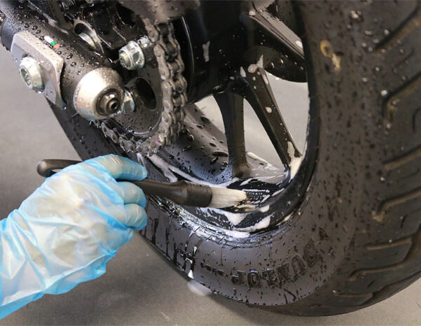 ・筆洗車後にダブル界面活性剤のクリーミーな泡のシャンプーでバイクをすみずみまで仕上げます。
