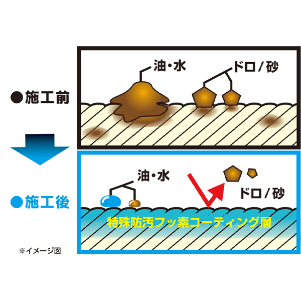 ■特殊フッ素ポリマーが撥水性を最大限に引き出すため雨による汚れや排気