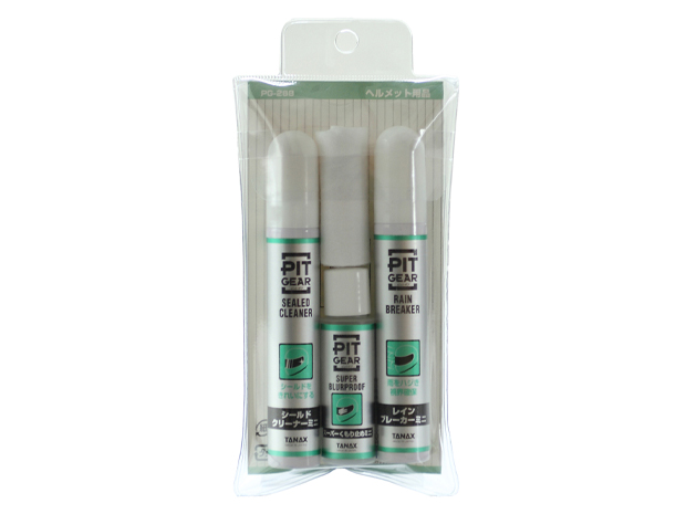 | 部品構成 | ・シールドクリーナーミニ(20ml)×1 ・スーパーくもり止めミニ(15ml)×1 ・レインブレーカーミニ(20ml)×1 |
