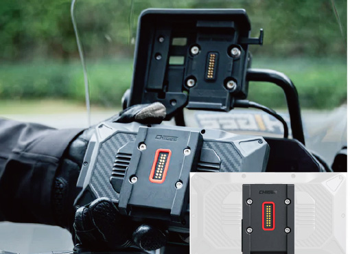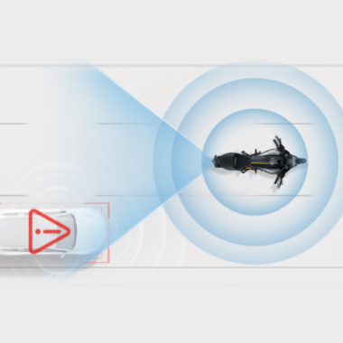 オートバイ後方の視界から接近する車両をスマートAiで自動検知。接近する車輌をモニターに通知しライダーに警告します。