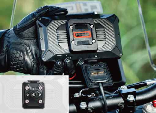 ・付属のカメラケーブルをマウント側面のUSB-Cソケットに挿すことで、要望の多かったモニターのドラレコ機能も使えます。