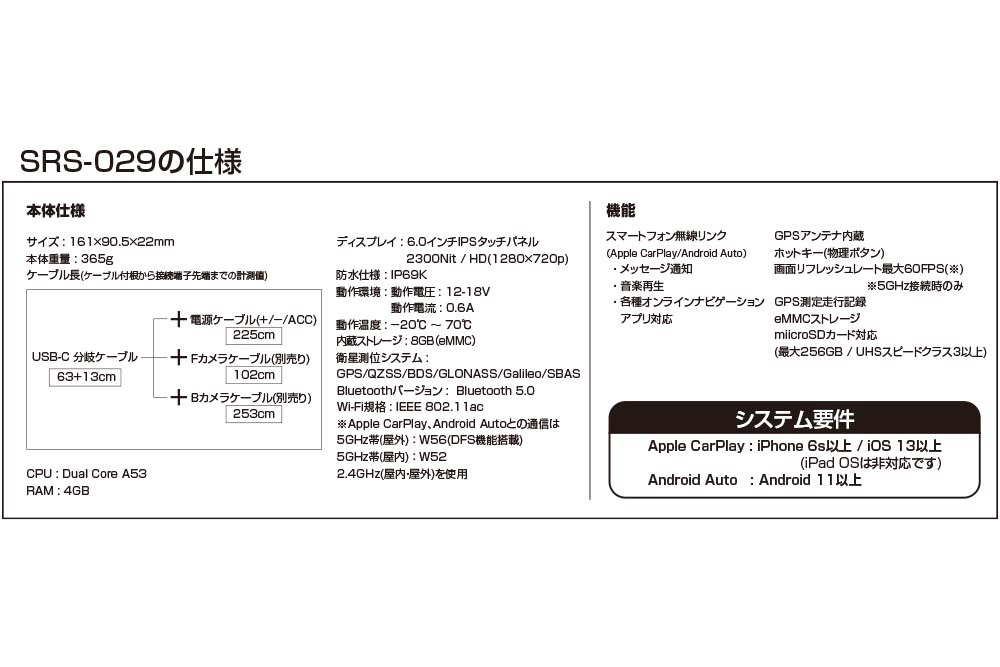 前後カメラセット/別売(200万画素イメージセンサー)